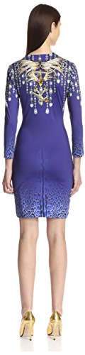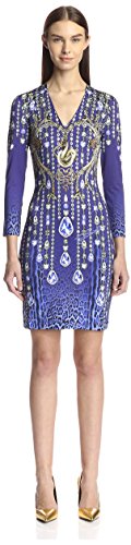 Boldly printed knit dress with V neckline and 3/4 sleeves