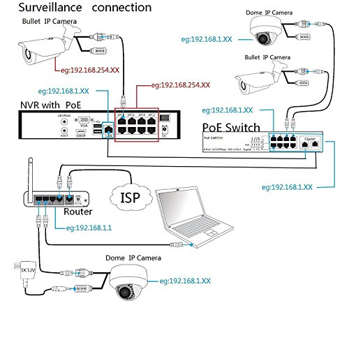 8-ch Network Cameras Can Be Connected, Plug & Play Up to 8 Independent PoE Network Connections