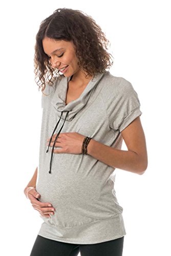 This comfortable short sleeve top is perfect for a a casual weekend. With a long line tunic length, this top will keep you cozy throughout pregnancy and it even has discreet nursing access. The adjustable drawstring neck can bee loosened up for breastfeeding access through the discreet inner panel. Sizing (Order Pre-pregnancy Size) 4-6 = S | 8-10 = M | 12-14 = L | 16 - 18 = XL 48% Modal, 475% Cotton, 5% Spandex Machine wash cold with like colors. Hang to dry. Made in USAFeature