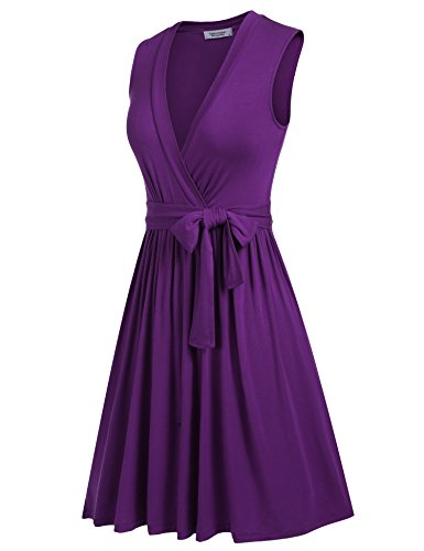 V neck, Sleeveless, wrap style, with belt, pleated waist