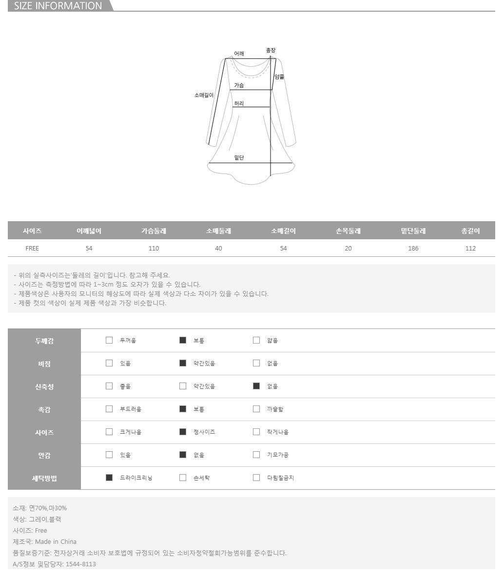 모델의 착용 컬러는 그레이 입니다.