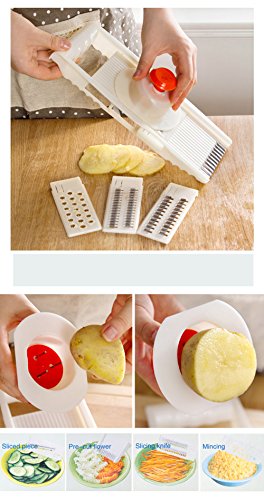Amazing Vegetable Slicer with 5 Thickness Settings Interchangeable Stainless Steel Blades Vegetable Chopper Cutter and Ergonomic Non Slip Handle
