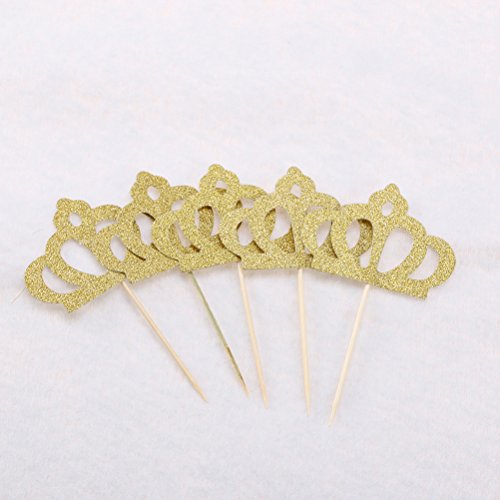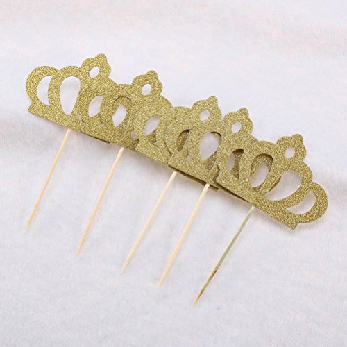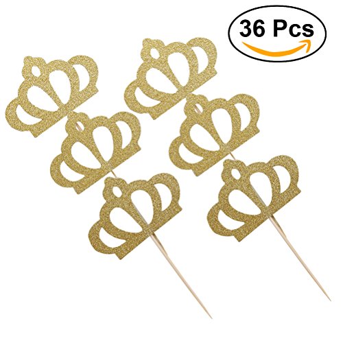 NUOLUX 36pcs Gold Crown Cupcake Topper Decorative Tiara Cupcake Picks Sign for Party Cake Decoration