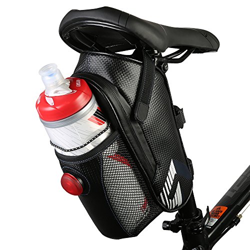Practical Design, Safe Riding --- Besides the reflective stripes on both side of the bag and the reflective logo on the front, a waterproof taillight also attached on the bag, including two modes: steady on and flash, which ensures the rider's security while riding at night. The light is powered by two CR2032 button battery and batteries are replaceable.