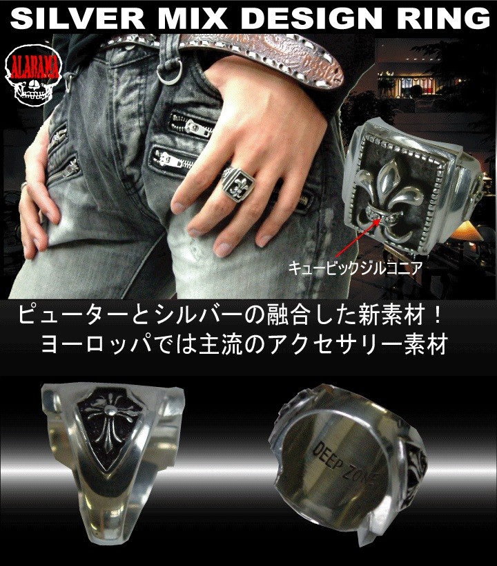 大放出!75%オフで送料無料!ピューターとシルバーの融合した、シルバーミックス・オリジナルリング。全く新しいアクセサリー素材です!ヨーロッパの方では最も主流な素材ですが、日本ではDeepZoneだけ。【素材】シルバーミックス(シルバー+ピューター)ジルコニア(石)【サイズ】16号・18号・20号・22号