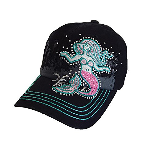 Binding : Apparel Product Description The Alabama Girl presents the beautiful mermaid cap. Made of 100 cotton with an adjustable Velcro strap ensuring the best fit. The prominent patched and bejeweled mermaid is colored with pink tail and hair. Her silver skin is outlined in turquoise. Behind the mermaid is a white shadow design of an underwater sea world scene. You are sure to wear this cap often as it will become one of your favorite hats. 0