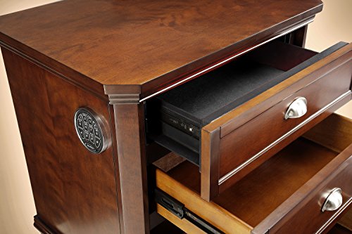 -. Feature : 2 millimeter-thick metal safe hidden inside the cabinet / Solid wood frame/premium-grade engineered wood panels/Veneer skin / High-end transitional design / UL® RSC security rated 12-button electronic combination lock built into cabinet / Zinc-plated high capacity full-extension drawer slides each able to hold 100lbs.