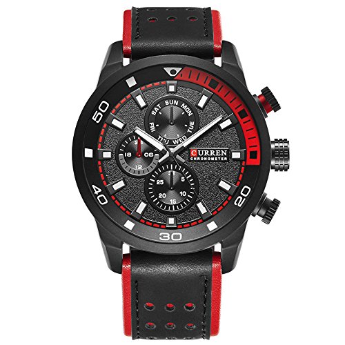 Curren 후숀 손목시계 맨즈 레더 밴드 아날로그 패션 포멀 8250G (레드)
