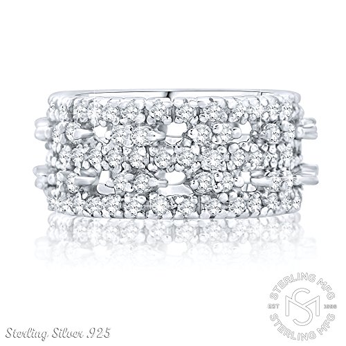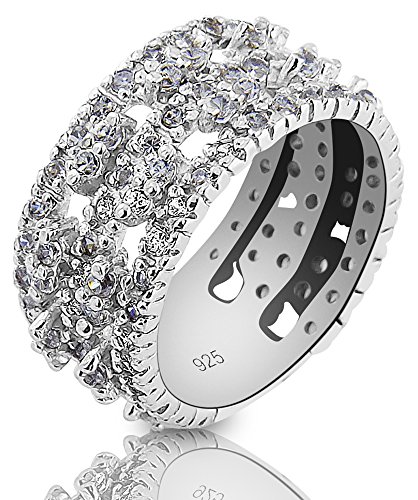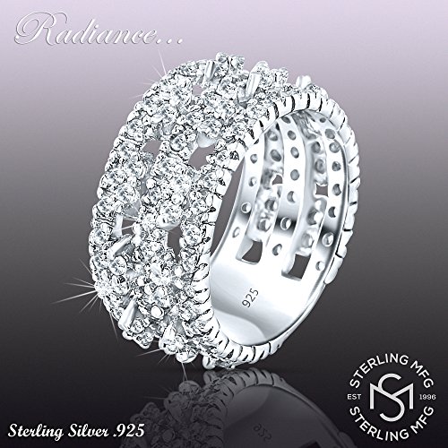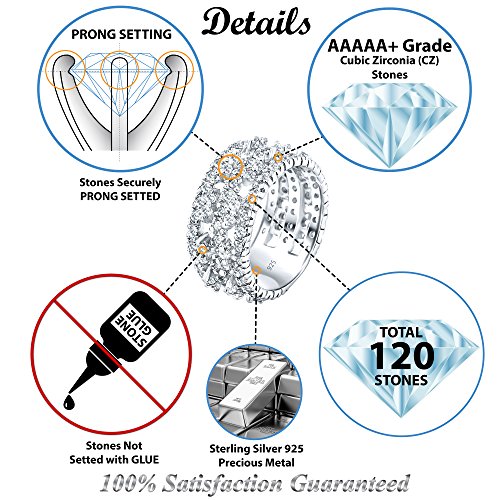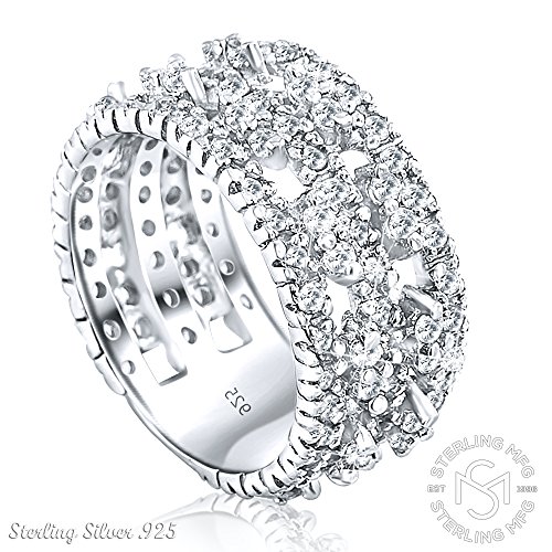 -. Title : Women's Sterling Silver .925 Fancy Ring Band with 120 Prong Set Round Cubic Zirconia (CZ) Stones