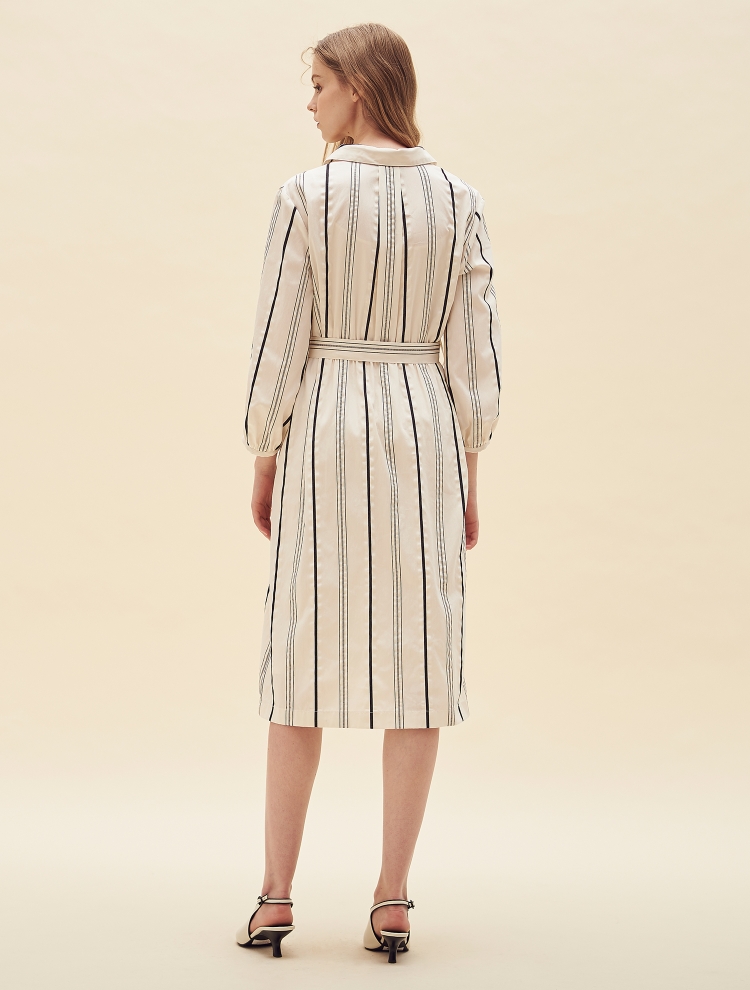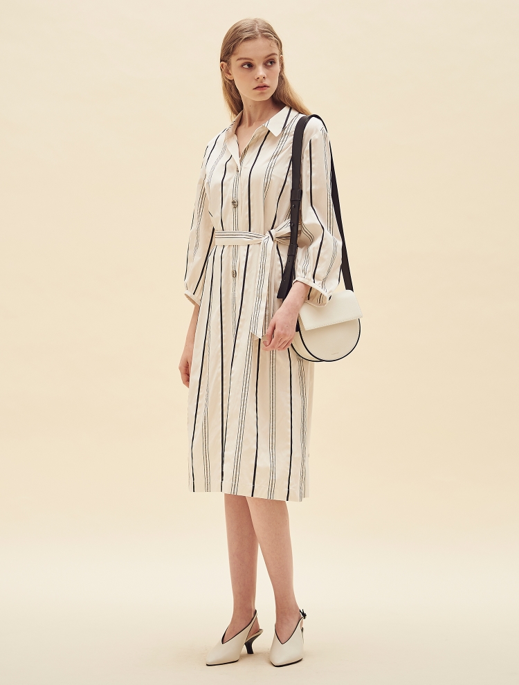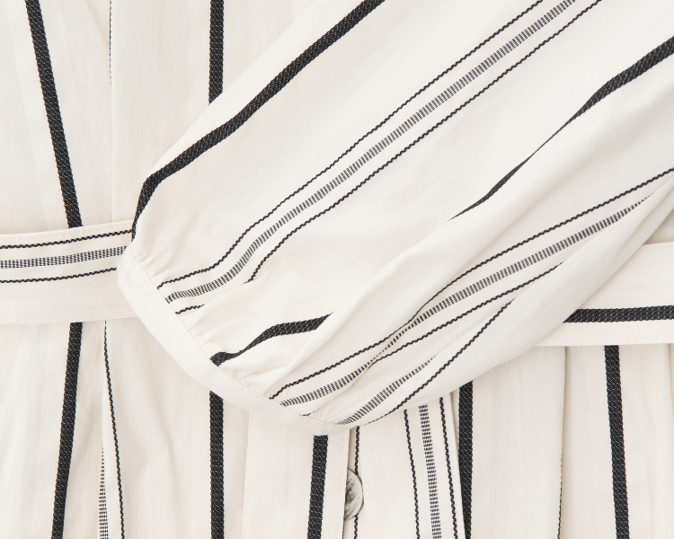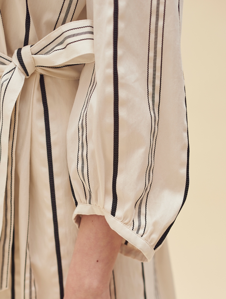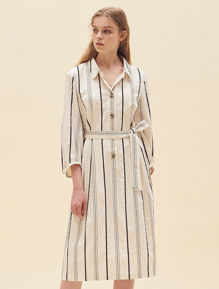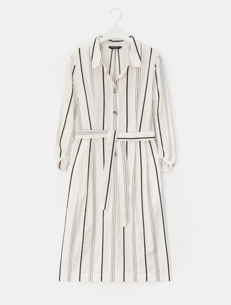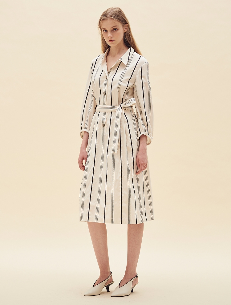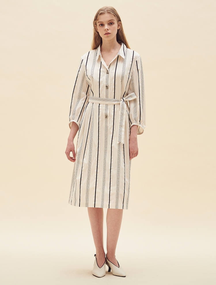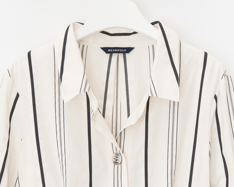 - 셔츠형 디자인으로 차분하고 세련된 스타일링이 가능하며 스트라이프를 더해 안정된 실루엣을 보여주는 제품입니다.
