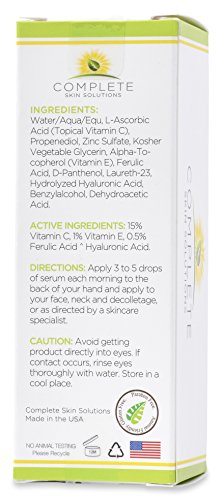 Complete Skin Solutions is offering you an ALL -NATURAL, POTENT vitamin C, E & ferulic & hyaluronic acid serum, to put the time clock back to its place!