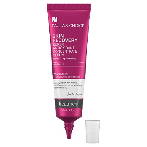 SKIN RECOVERY Super Antioxidant Concentrate Serum is what your skin needs to be hydrated, softer, and younger looking. This high-performance silky-smooth serum contains an ideal assortment of beneficial ingredients for dry skin to reestablish a dewy hydrated glow and improve the appearance of wrinkles. It has a luxuriously rich texture, absorbs easily into skin, and works perfectly alone or combined with our SKIN RECOVERY Moisturizer. This serum bathes dry, parched skin in wrinkle-smoothing retinol and hydrating, antioxidant-enriched plant oils. Smooths, softens, and fights the appearance of visible signs of environmental damage and aging as it helps strengthen skin so it's better able to resist environmental attack and future signs of aging. All Paula's Choice products are 100% fragrance free, clinically proven to be non-irritating, and never tested on animals.Feature