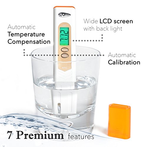 "7 Premium" Portable Pocket PH meter/Pen PH Tester And Temp High Accuracy, ATC, Back-Light - Buffer Powder - For Drinking Water, Hydroponics, Aquariums, Swimming Pools, Beer, Wine Or Cheese Production