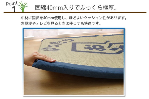 【素材】側地=い草 ※普通織 中材=固わた40mm ヘリ=綿100%(返し二方)