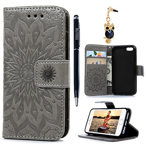 -. Title : iPhone SE Case, iPhone 5S Case,iPhone 5 Case MOLLYCOOCLE [Embossed Sun Flower] PU Leather Wallet Case Kickstand Magnetic Flip Case Card Holders & Hand Strap Protective Cover for iPhone SE/5S/S