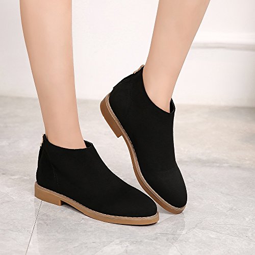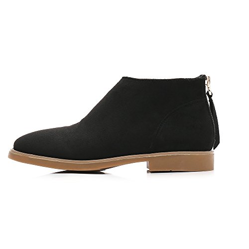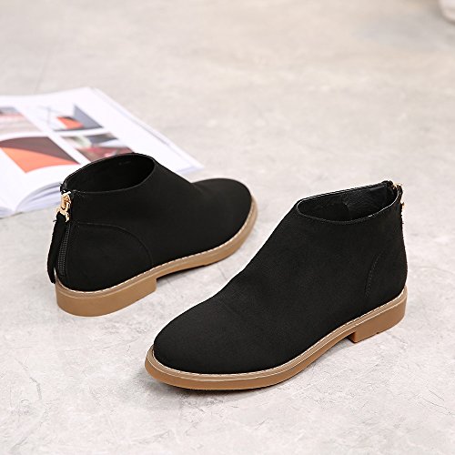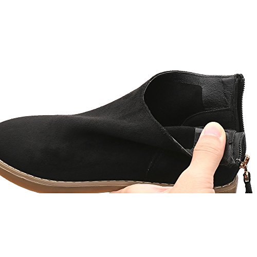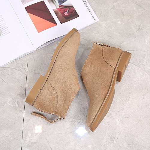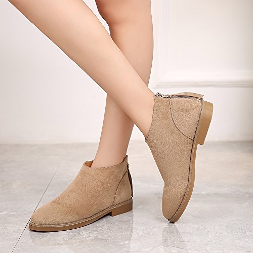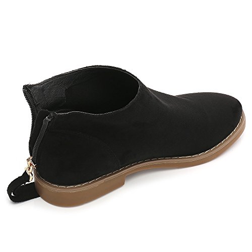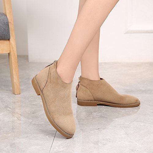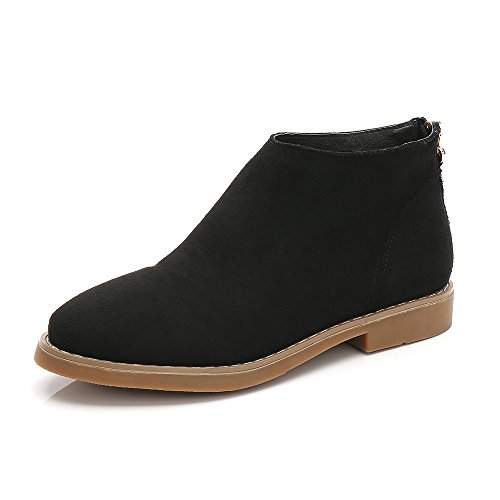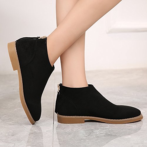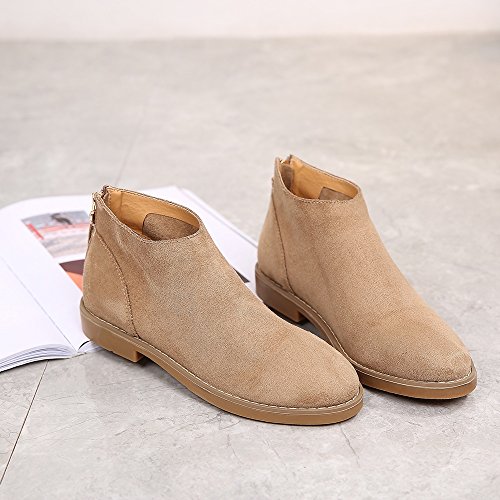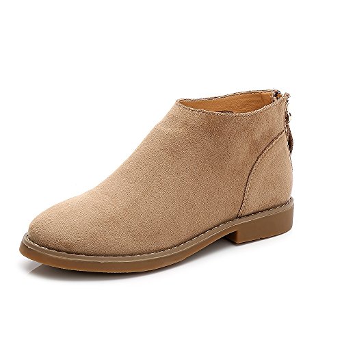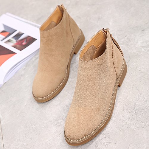 Binding : Apparel Product Description Item Type: Ankle Boots Toe Type:Round Toe Closure Type: Rear heel zipper closure Heel Type:Low Heel Heel Height:0.98"(2.5CM) Outer Material:Suede Outsole Material:Rubber Color:Black /Natural Shoe Width:Regular