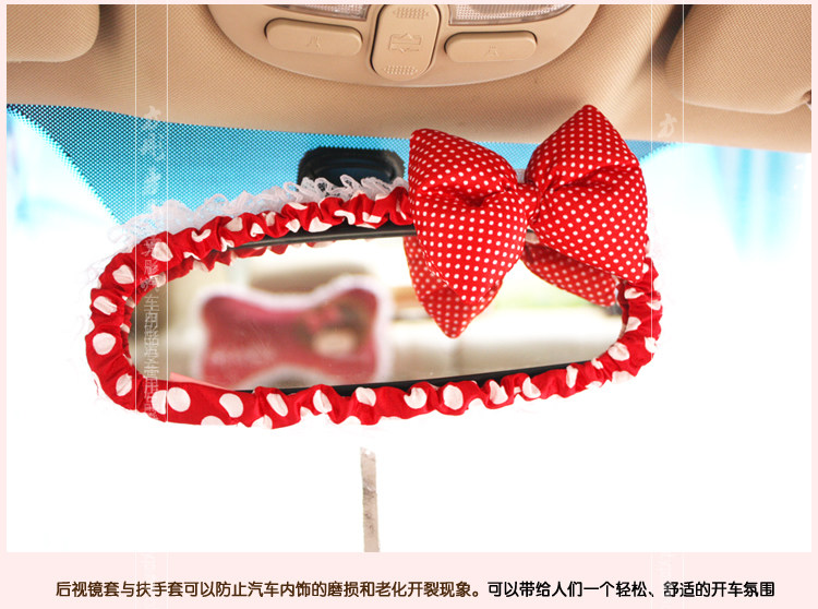 Rearview mirror cover set directly on the car interior rearview mirror, after the gloves on the handle to start the package, can be fixed with Velcro above
