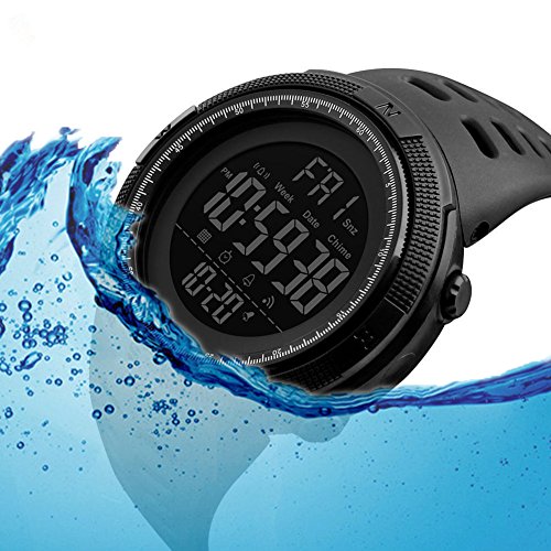 -. Title : Digital Watch for Men Electronic Watch Waterproof Fashion Alarm Chronograph Calendar– All Black