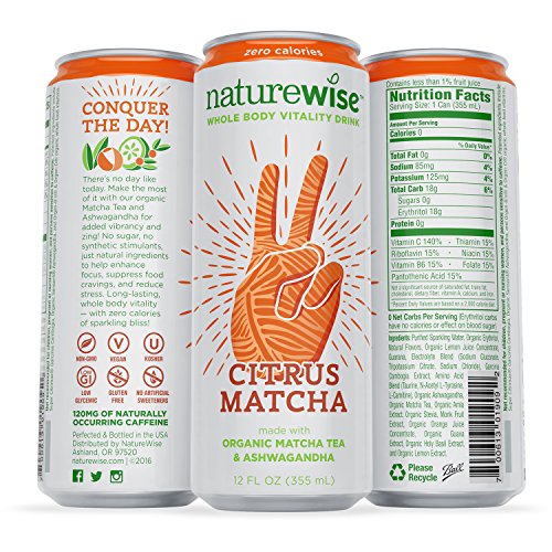 ReleaseDate : 2016-09-06 Studio : NatureWise Publisher : NatureWise Binding : Health and Beauty Product Description NatureWise Whole Body Vitality Drinks are non-GMO and packed with exhilarating ingredients, including: Organic Matcha, Organic Ashwagandha, Organic Whole Food Vitamins, and Organic Holy Basil. No sugar, nothing artificial, just zero calories of sparkling bliss! Citrus Matcha combines the citrusy tang of oranges and lemons with organic matcha in a lightly effervescent drink. 0