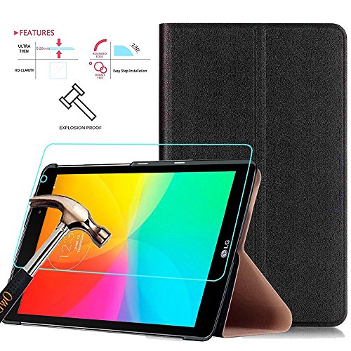 Gzerma LG G Pad X 8.0 Case + Screen Protector, Stand Flip Wallet PU Leather Cover, Shatterproof and Touch Sensitive Protective Film for LG G Pad X 8.0 V521 Tablet (Black)