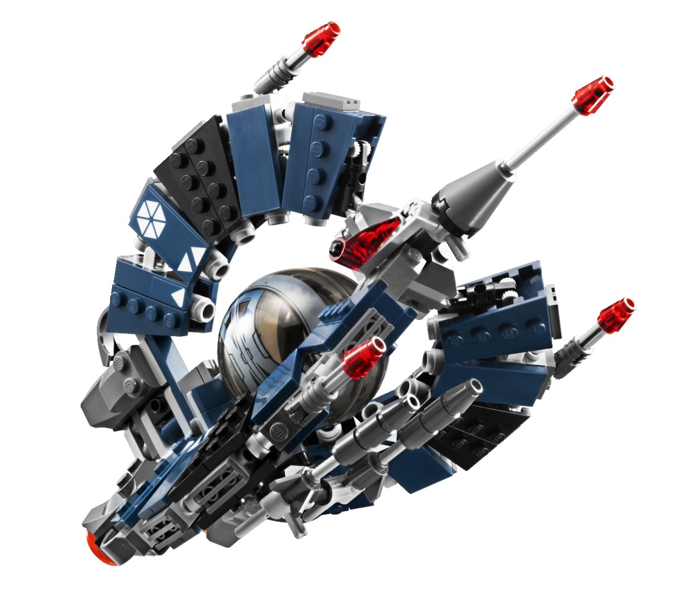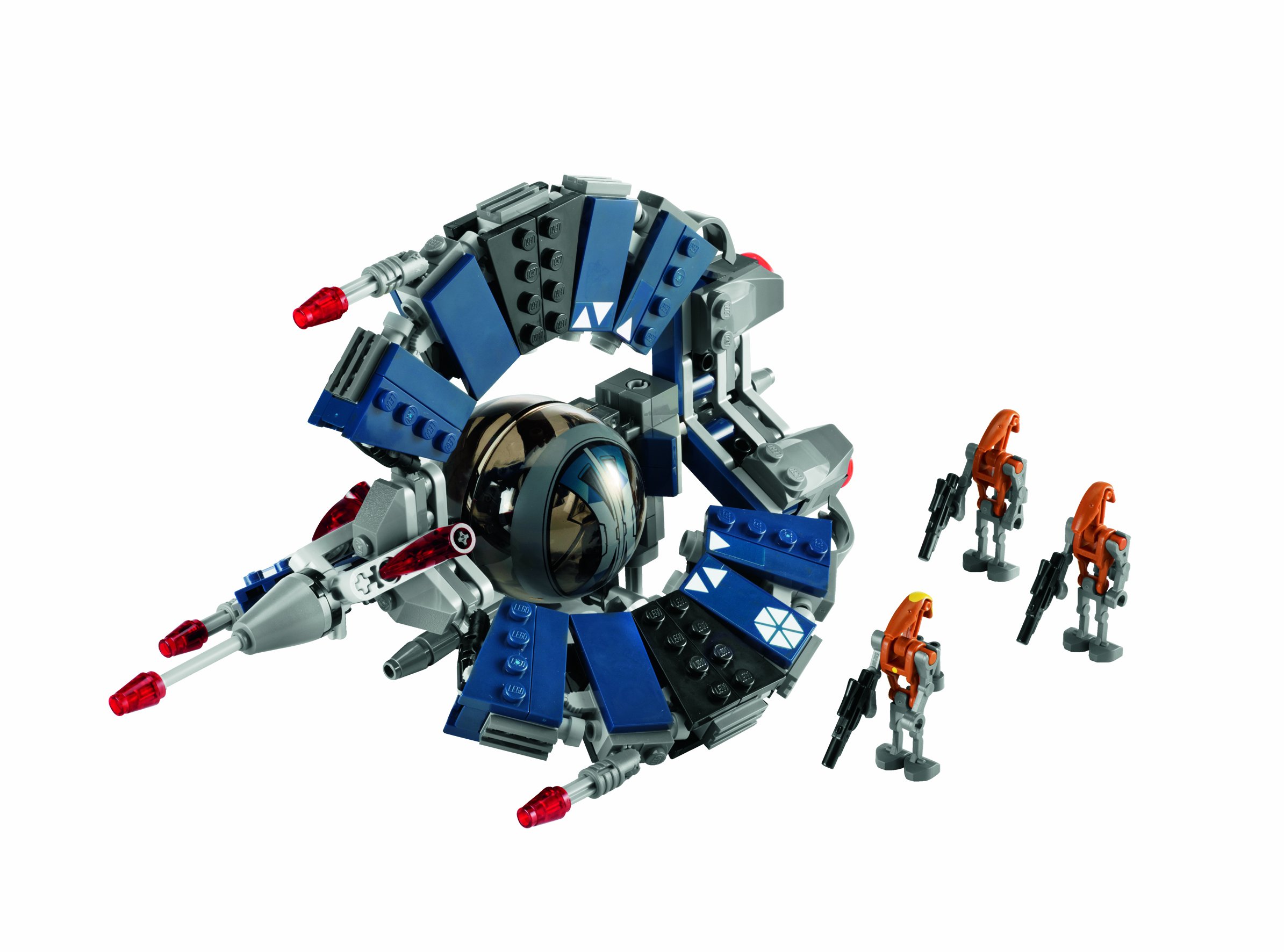 Droid triafighter equipped with blaster gun and flick missile and Battle Droid · escort with jet pack torment Republican star fighter in space game.