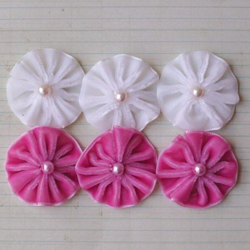 Velvet Pleats Flowers With Pearls 1.5" 6/Pkg-Milk & Carnation