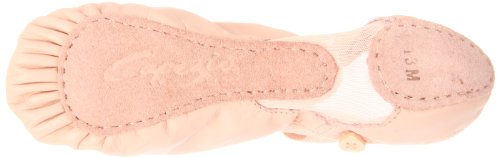 Soft leather upper with a power mesh Growth Packet, soft elastic binding and adjustable instep straps all work together so every child can learn to love ballet