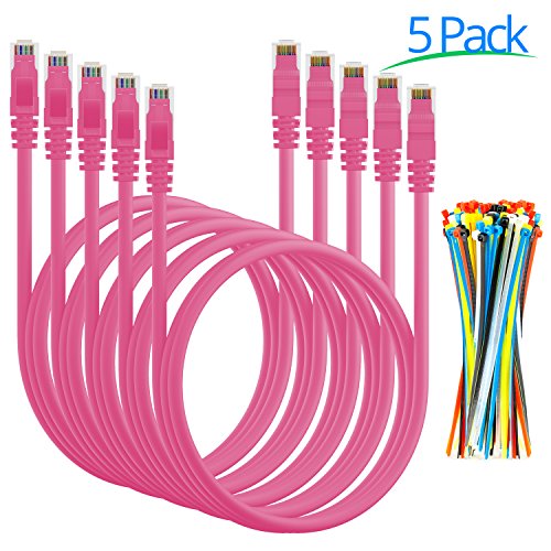 High Speed Cat6, 5 Ft Ethernet Cable 24 AWG, Snagless RJ45 Ethernet Patch Cable provides connectivity for LAN network components such as PCs, computer servers, printers, routers, switch boxes, network media players, NAS, VoIP phones, PoE devices, and more;