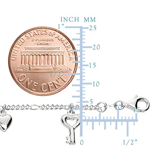 -. Title : Dangling Keys And Hearts Figaro Chain Anklet In Sterling Silver