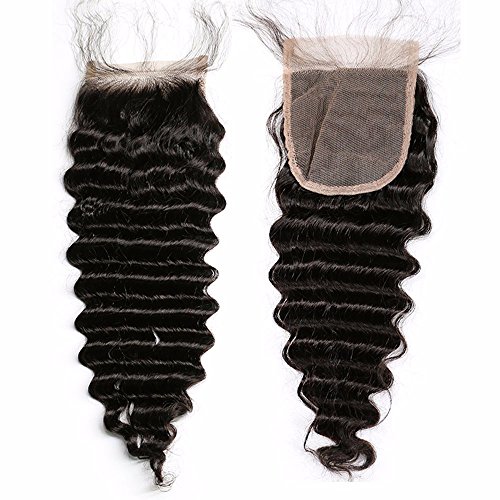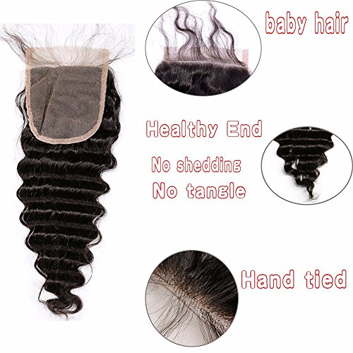 7A Brazilian Deep Wave 4x4 Lace Closure With Baby Hair Free Part Natural Black 100% Unprocessed Virgin Human Hair(16")
