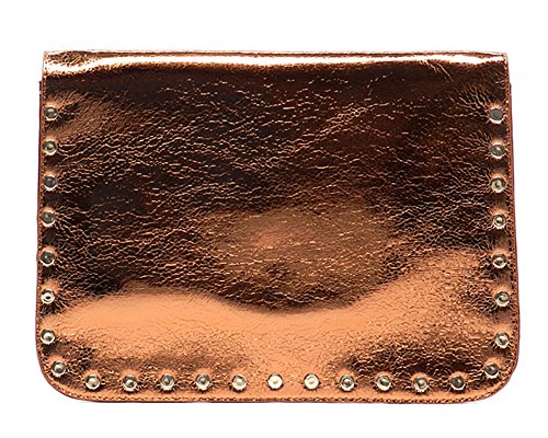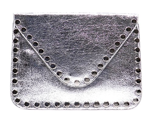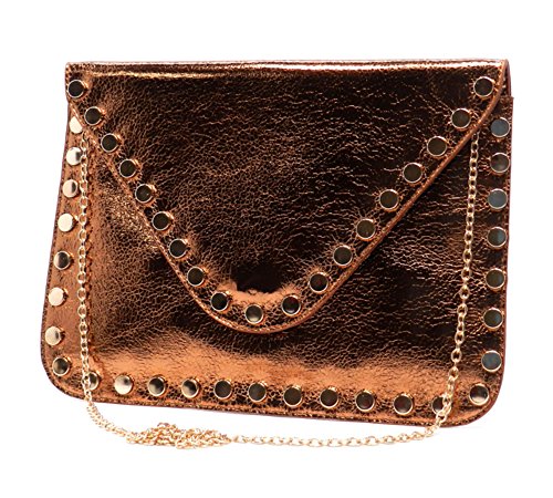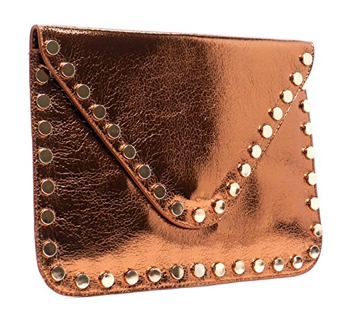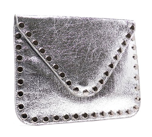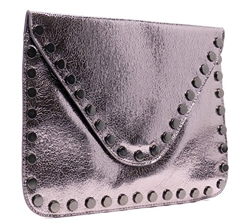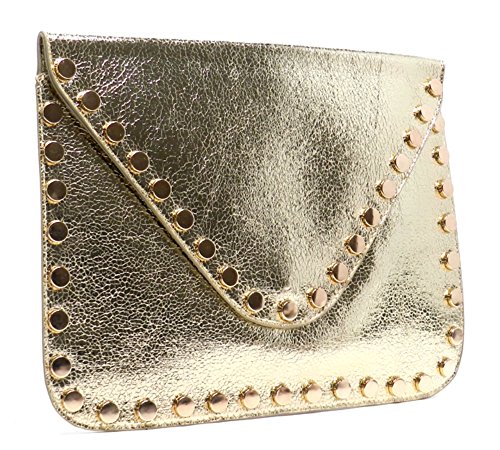 -. Brand : Elphis -. Color : Black -. Department : womens -. Feature : Made of high quality Faux Vegan Leather (PU leather) / Magnetic snap & Zip top closure / Removable chain shoulder strap / Quality polyester fabric lining interior / L 9.5" * H 6" * W 1" -. Model : 982981 -. PackageQuantity : 1 -. ProductGroup : Shoes -. ProductTypeName : HANDBAG -. Size : Large -. Title : Elphis Studded Metallic Evening Large Envelope Clutch Purse Cross Body Bag