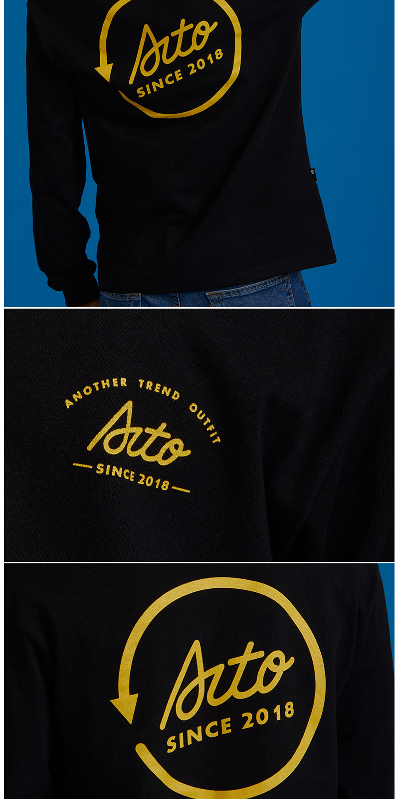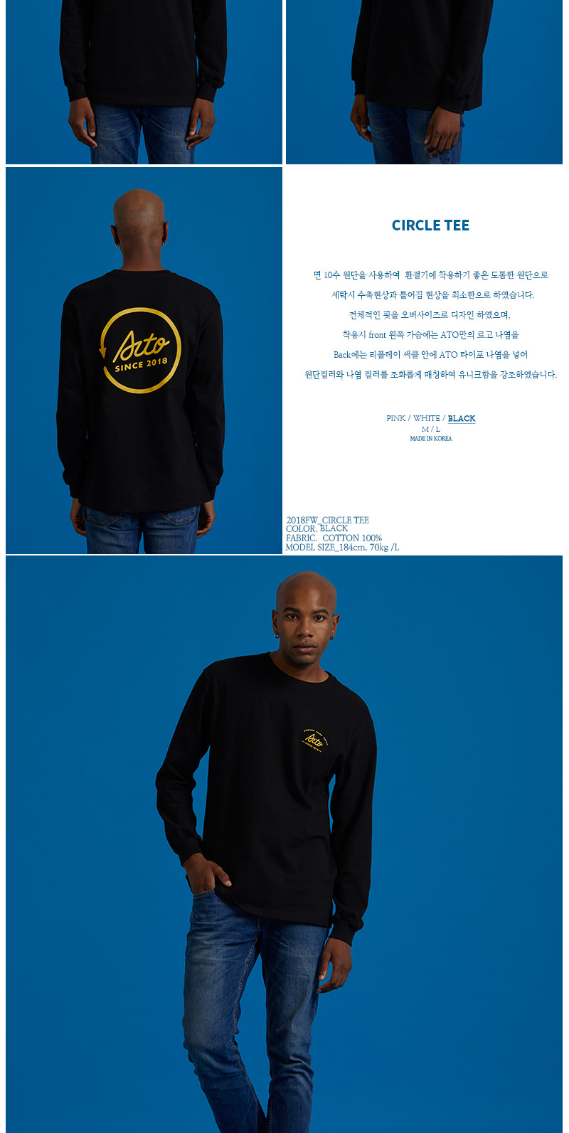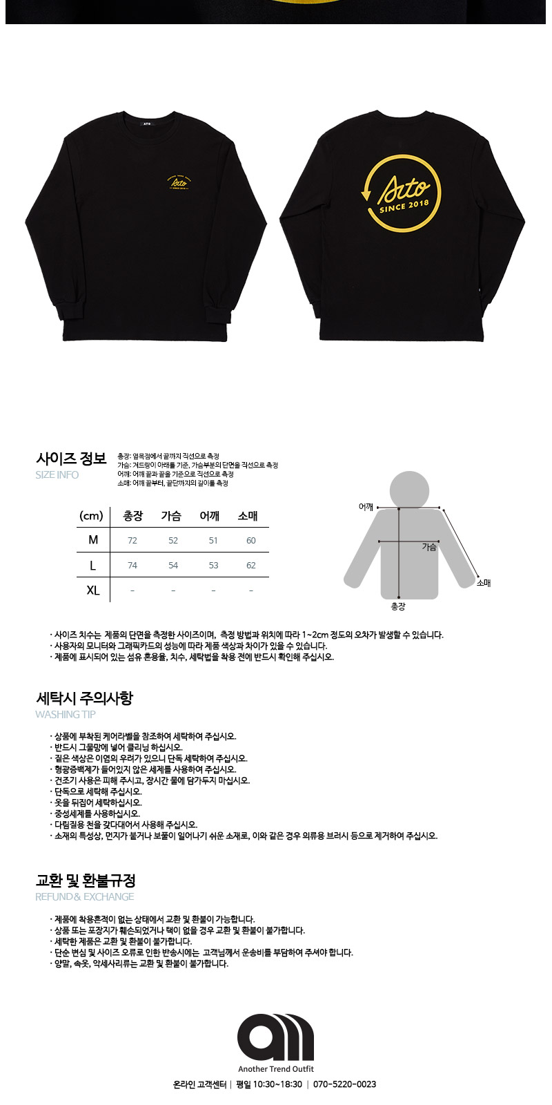 전체적인 핏을 오버사이즈로 디자인 하였으며, 착용시 front 왼쪽 가슴에는 ATO만의 로고 나염을, Back에는 리플레이 써클 안에 ATO 타이포 나염을