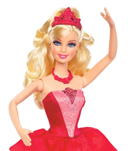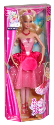 From the new movie Barbie in the Pink Shoes, Barbie stars as Kristyn, a beautiful ballerina whose magical pink shoes take her into a fantasy world of ballet. This doll wears an outfit inspired by the film: her sparkling pink and red dress is accessorized with a rose tiara. Ages 3 years and up.