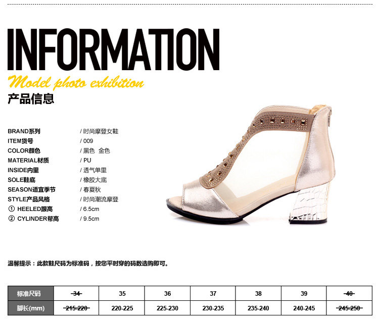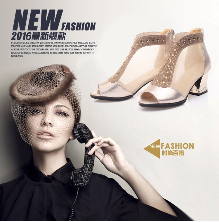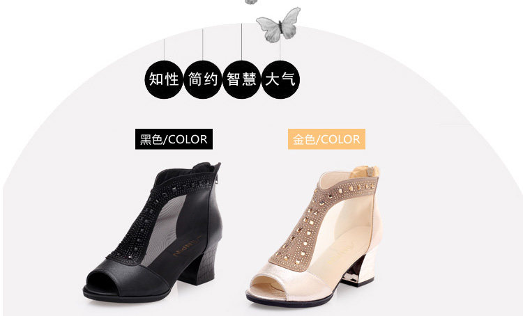 - 流行元素: 镂空 水钻 粗跟 网状 罗马风格