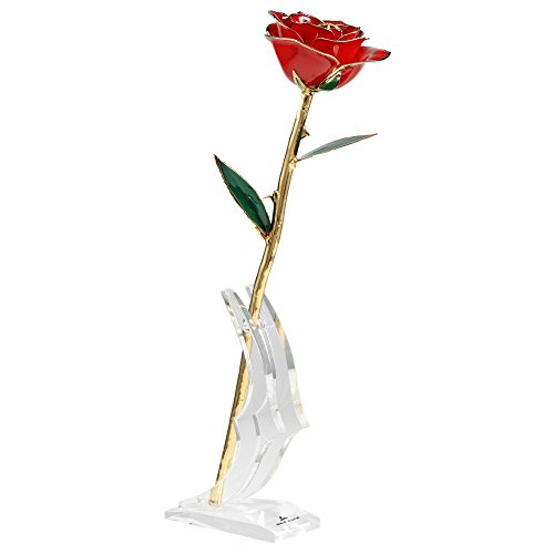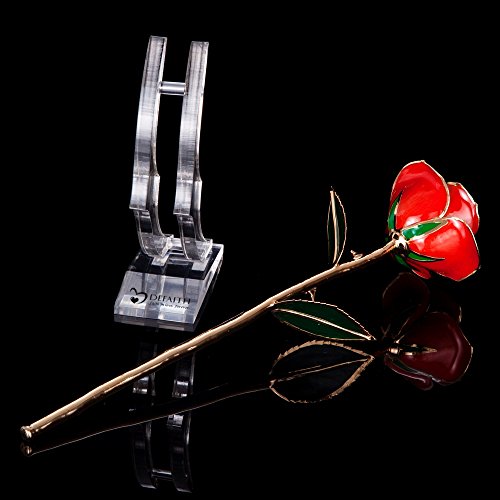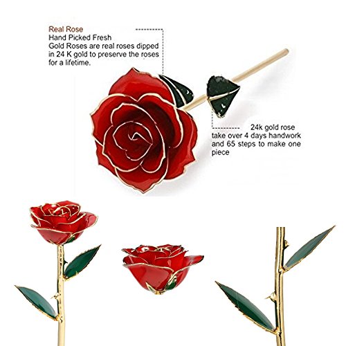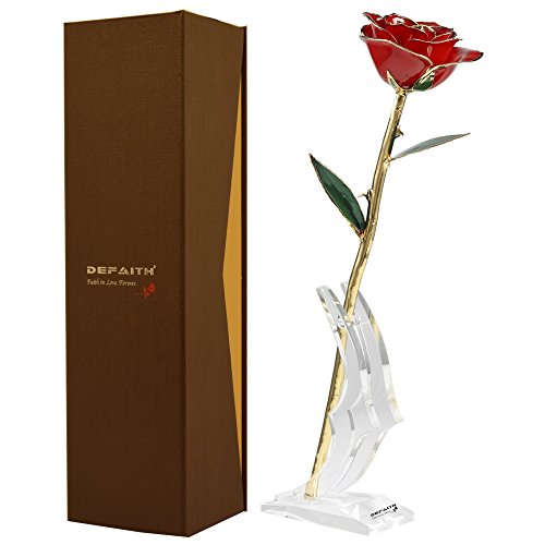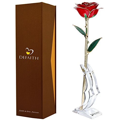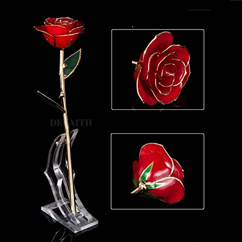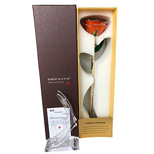 A special way to say "I love you." Our real roses make a "wow" statement portraying the love that still shines brightly! How DEFAITH® produce these Gold Rose Through a special process a real rose is coated in lacquer and then trimmed in 24kt gold to preserve the rose's original stunning beauty and color. Each gold rose is preserved by hand through an extensive process.These specialty roses are chosen at the peak of their bloom. They then go through a lengthy series of steps that ensures that the breathtaking roses maintain their brilliant color and bloom. The edges and stems are dipped in 24 K gold to capture the beauty of both the gold and the real rose. The intricate details of the leaves and delicate petals remain visible. What is Included 1. DEFAITH® Real Gold Trimmed Rose 2. Certificate of Authenticity 3. DEFAITH® 100% Cotton Cleaning Cloth 4. Greeting Card 5. Special Designed Gift Package About DEFAITH Faith is persistence. Faith is courage. Faith is love. Faith is like radar that sees through the fog. Love gives people strength and helps people become perfect. And that's where DEFAITH® comes from. We may you have faith in yourself, deliver your love and faith to who is important to you. 0 |