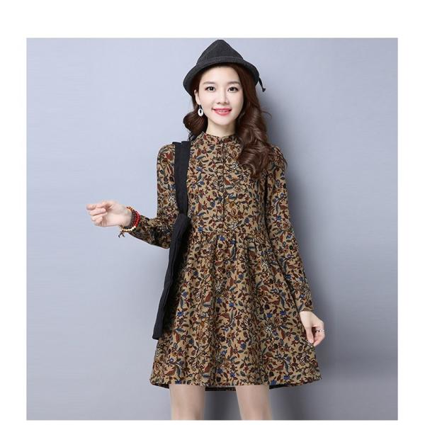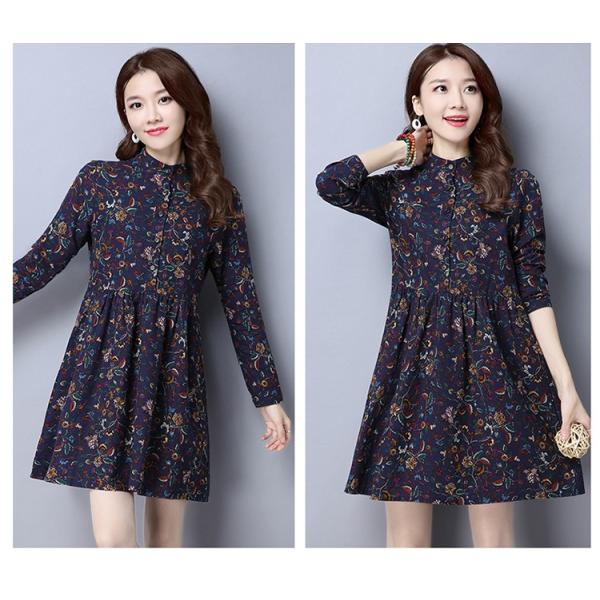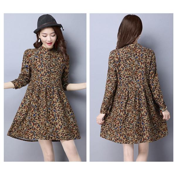 花柄プリントが落ち着きのある佇まいの長袖ワンピース。