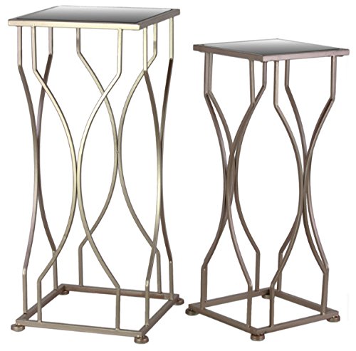 Benzara Accent Table with Mirror Top and Square Base Set of 2-Gold