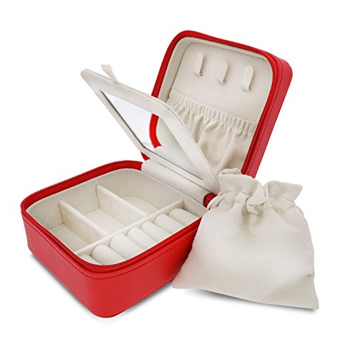 FUNCTIONS - Removable drawstring pouch for extra storage. A generously-sized mirror that is sufficient for mounting earrings.