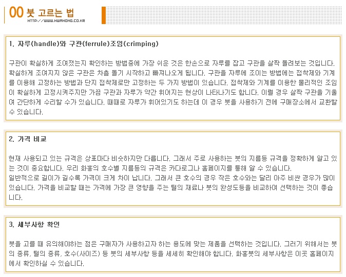 하지만 아주 탄력적이기 때문에 좋은 스냅(snap)을 줍니다. 우모는 평(Flat)붓을 만들 때 주로 사용됩니다.