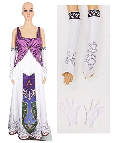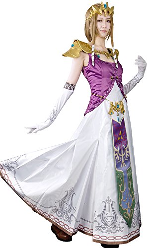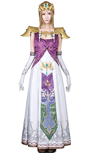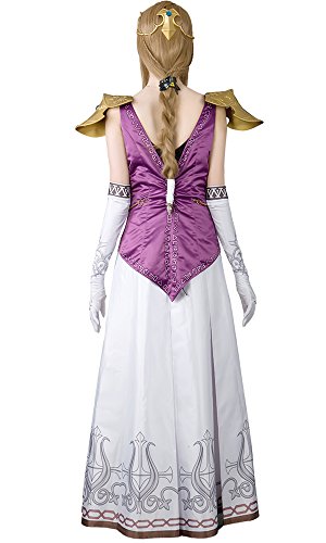 -. Brand : Miccostumes -. Color : Purple and White -. Department : Womens -. Feature : High-quality bridal satin,high-level PU resin / Hand wash in cold water. Line dry. / This costume features a dress, two over sleeves and a pair of white gloves. It matches the pauldrons, crown,waist chain decoration and hair accessories. / The digital printing craft is used to ensure the exact color and design on the lower part of the dress. And it turns out to be exact with the 3D model of the game. / The pauldron featuring two shoulder armors with a plastron in the middle, a crown including forehead and rear decoration, a waist chain decoration, and hair accessories including three pendants and a black hair clip have to be purchased separately. -. PackageQuantity : 1 -. ProductGroup : Apparel -. ProductTypeName : ADULT_COSTUME -. Title : Miccostumes Women's the Legend of Zelda Princess Zelda Cosplay/ Wedding Costume