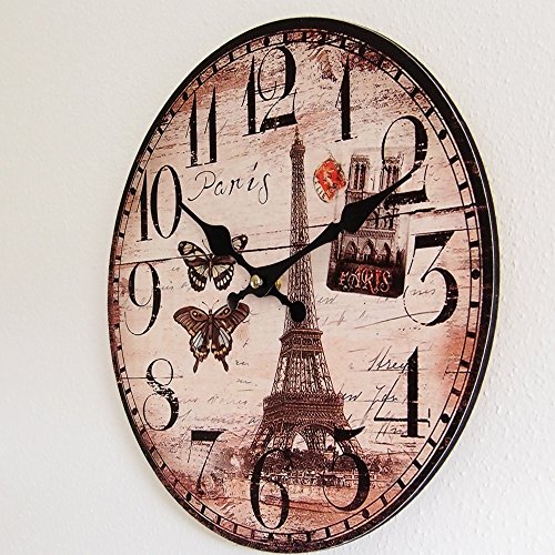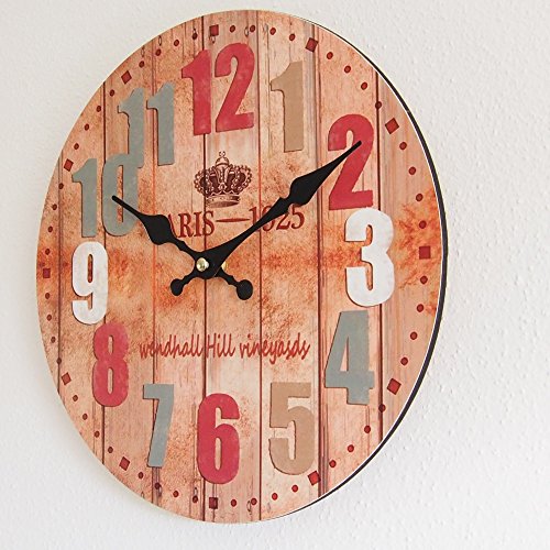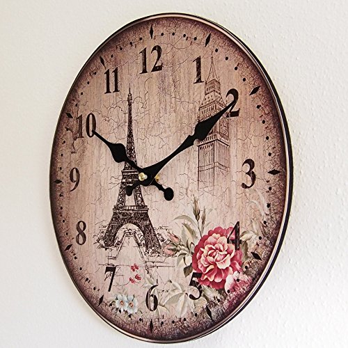 -. Feature : sehr dekorative Wanduhr im Vintage Design / Material: MDF-Mitteldichte Holzfaserplatte, Motivapplikation mit künstlichen Gebrauchsspuren / Zeiger: schwarzes Metall, Quarzuhrwerk, Maße: Ø 28 cm / präzises Quarzuhrwerk mit Aufhängevorrichtung auf der Rückseite / Die Uhr wird mit einer handelsüblichen AA Batterie betrieben. Lieferung erfolgt OHNE Batterie