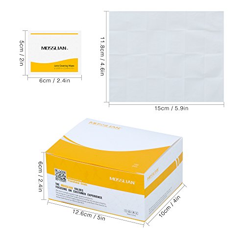 -. Feature : Pe-Moistened Lens Cleaning wipes make all the cleaning of lens more easer and quickly. / Streak free: Wipes dry quickly and leave ZERO streaks, marks,Fog and smudges on the lenses. Light scent. / Individually wrapped wipe is available to carry everywhere, Anti-breakage package, Travel Friendly. / Common use in all the lens like Camera, Phone, Computer, Eyeglasses. / 100 cleaning wipes in each box, 4 x 2.5 x 2.5 inch sheet each.