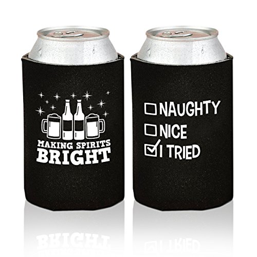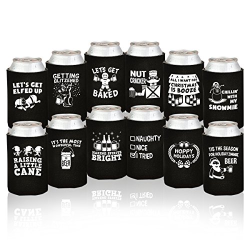 Christmas Funny Beer Can Coolers- 12 Pack Party Favor Drink Coolies for Man- Gag Gifts for Christmas Holiday Parties - Novelty Beverage Insulators with Clever Jokes and Sayings for Beer Drinking Men