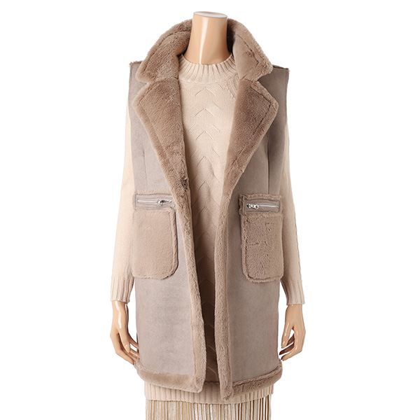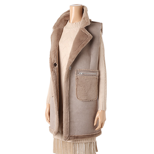 포켓 포인트가 멋진 편하고 따뜻한 길이감도 좋은 무스탕 베스트입니다.