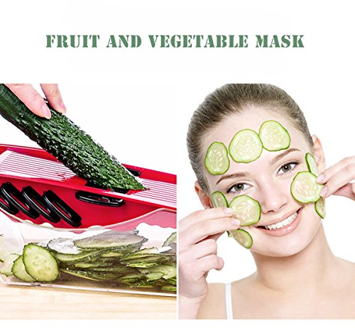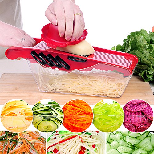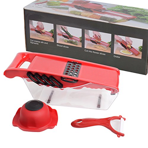 5 in 1 Multifunction Vegetable Mandoline Slicer, Cut Coarse Silk and Filaments, Sliced Slices, Flower Slices and Cheese Grater with Container (Red)