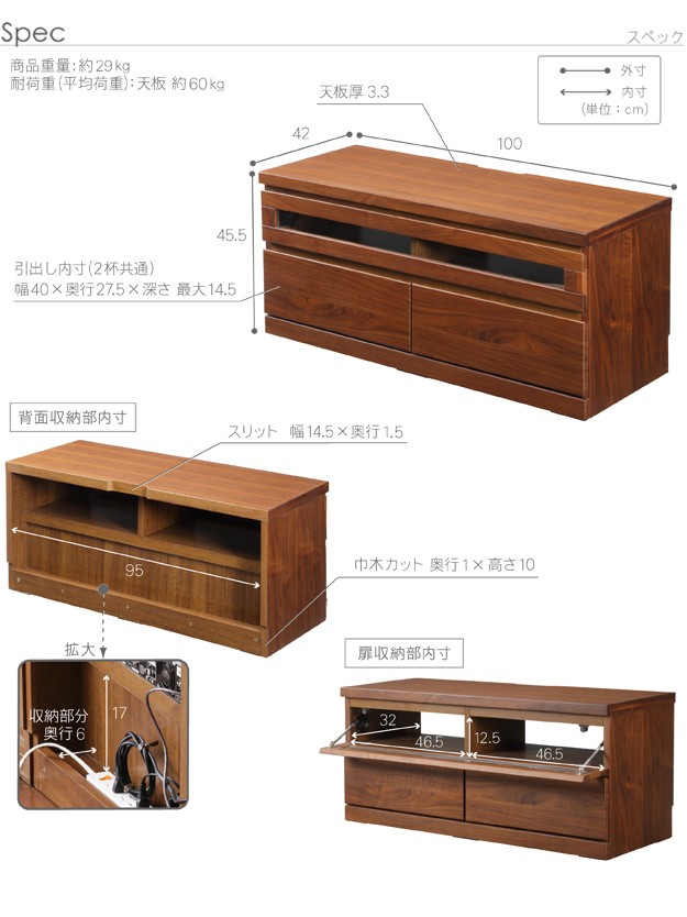 サイズ(cm):幅100x奥行42x高さ45.5cm・約29kg