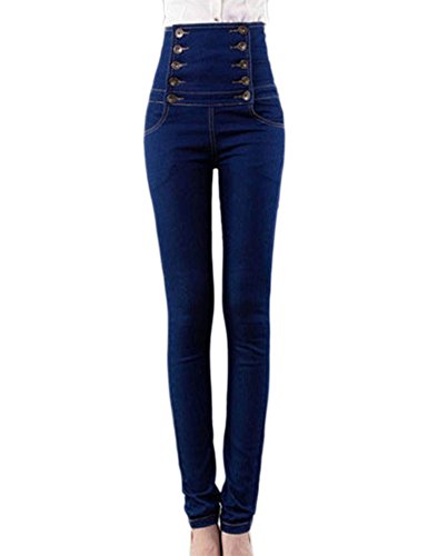 -. Feature : 定番のハイウエストパンツを越えた超ハイウエストデニムストレッチパンツ!! / 2列ボタンでウエストのラインを作り上げ、細く効果が抜群。 / さらにバックリボン付きで可愛らしさと格好良さの両方を見せます。 / ストレッチ性が高いデニム素材を使用しているため、スキニーでお足のラインを美しく写し、美脚効果が抜群!! / ストレッチ性もハイウエストも可愛らしさも全部揃えているこのパンツでもっとお洒落になりましょう!!