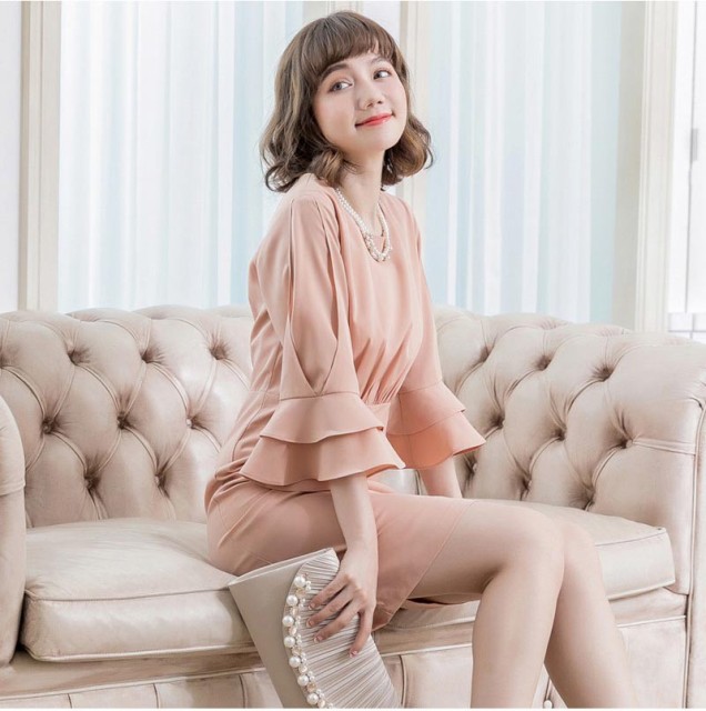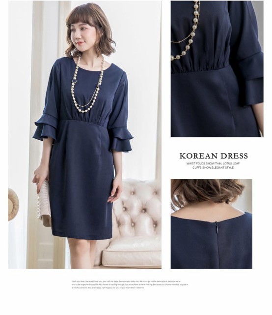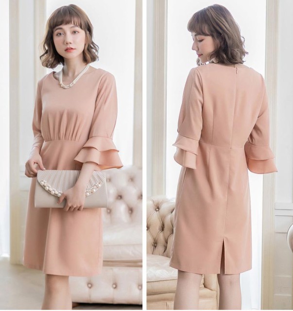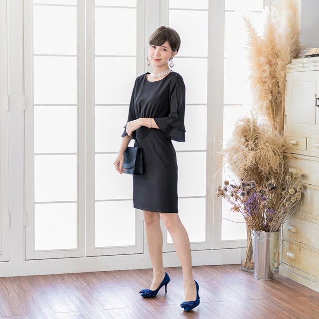 ふんわりと広がるラッフル袖がフェミニンなワンピースドレス。