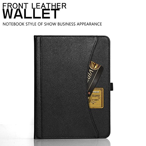 New iPad 9.7 Inch 2017 / iPad Air 2 / iPad Air Case,SKYLMW Folio Leather Case Cover with Three Slots Stand,Front Document/Card Pocket,Convenient Pen Holder,Full-Body Anti-Slip Protective Case ,Black