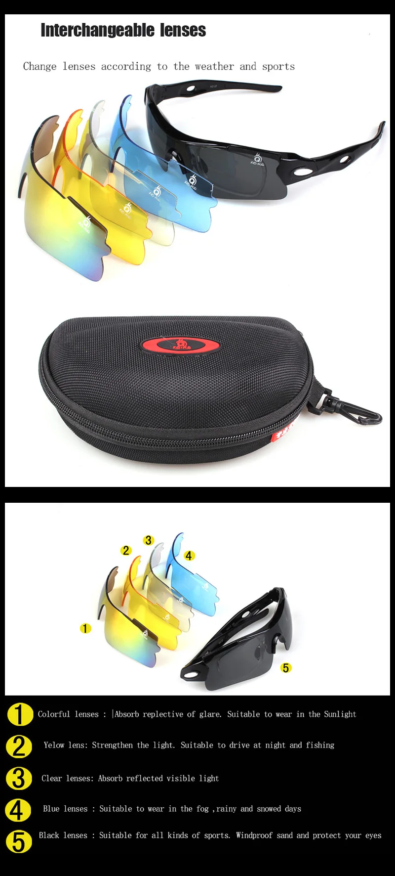 Lens color:Black yellow blue clear coloful